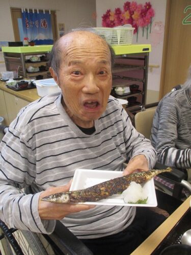 今回は、10月末に行った食レク「サンマの塩焼き」の様子です。
