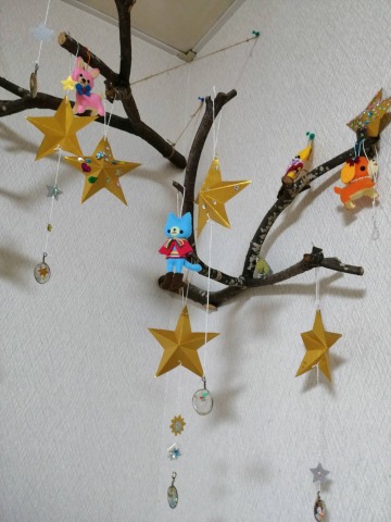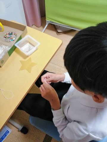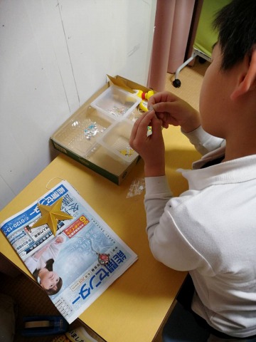 12月1日(月)の活動はクリスマスをイメージした星のつるし飾り製作です。