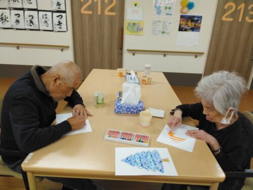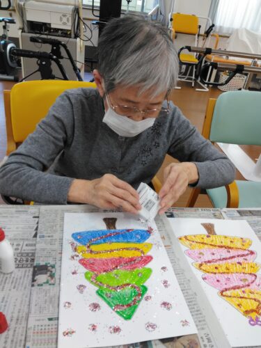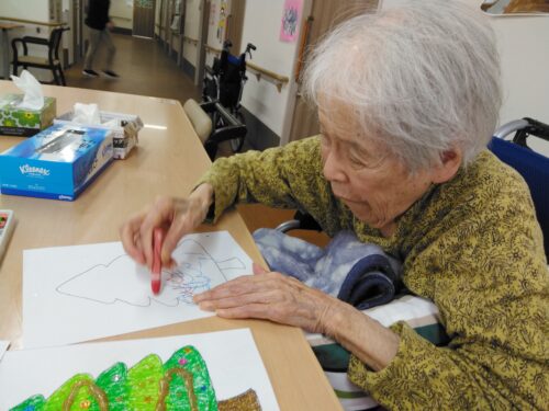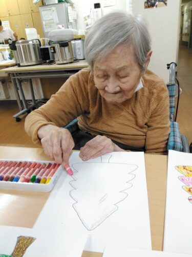 まずは、クリスマスツリーの下書きをされた用紙から始めていきます。