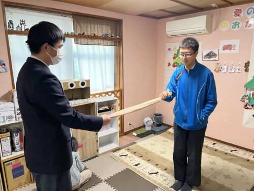 さわやか愛の家 のおがた館 タオル引き相撲 2025-12-03 2025-12-03 こんにちはᐕ)ノ さわやか愛の家のおがた館です🏠 今回はタオル引き相撲をして遊びました😊 皆さんで力加減を調整しながら駆け引きをしていました😆 やはり大きいお兄さんがとても強かったみたいですね😄 さわやか愛の家のおがた館 城