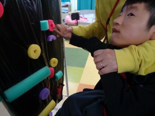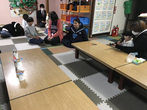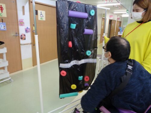 「右手でここ持ったけ左手じゃ届かんやん!」