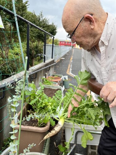 さわやかレークサイド中の原 収穫と土の手入れを・・・♡ 2025-12-04 2025-12-04 皆様、こんにちわ 先日までの穏やかな天気が、一気に真冬並みの気温になっていますね(´;ω;`) 各フロアに野菜や花つくりの得意なご入居者様がいらっしゃるのですが 今回は、3階フロアのお二人のご様子です。野崎