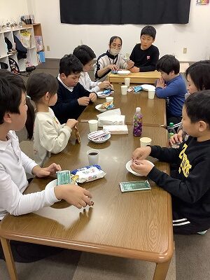 お祝いの後は、みんなでおやつパーティーです! カラフルなラムネや美味しいお菓子を囲んで、楽しいひとときを過ごしました。 「どれにしようかな?」「これ美味しいね!」と会話も弾み、笑顔がいっぱいでした😊