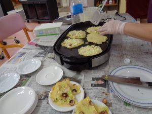 本日の調理レクは『 倹約お好み焼き 』でした。