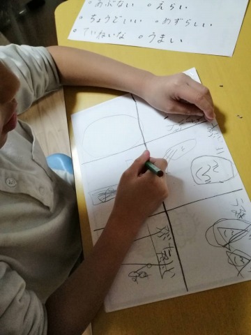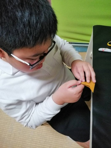 まずは星形に切り取った色画用紙を折っていくところからです。