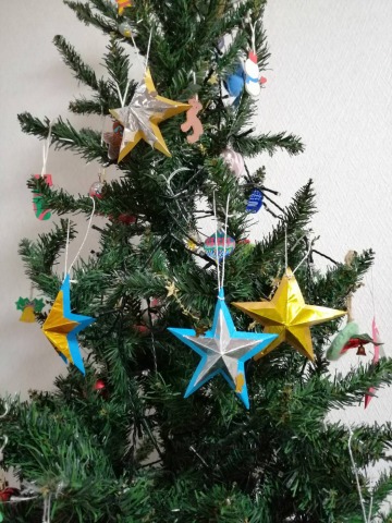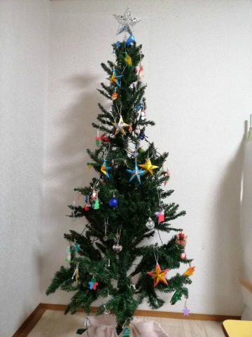 キラキラのお星さまをツリーに飾るととっても可愛いですね。