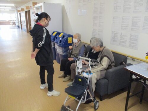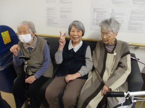 カメラに気付いたご入居者様が、ピースを向けて下さりました😊
