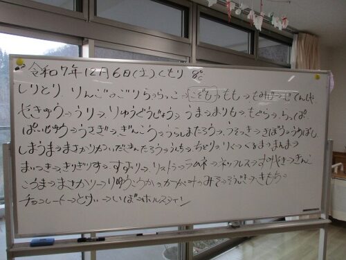 さわやか室蘭弐番館 3階 6日活力朝礼♪ 2025-12-06 2025-12-06 皆様こんにちは♪ 昨日の様子をお届けします 9時からラジオ体操です 続いて頭の体操 しりとりを行いました 和やかな一日になります様に☆