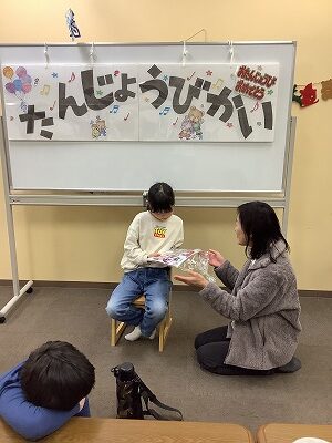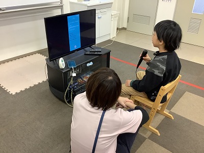 テレビ画面に映し出された歌詞を見ながら、マイクを持って熱唱するお友達!みんなの前で歌うのはちょっぴり恥ずかしいけれど、お気に入りの曲がかかると自然と体が動き出します。