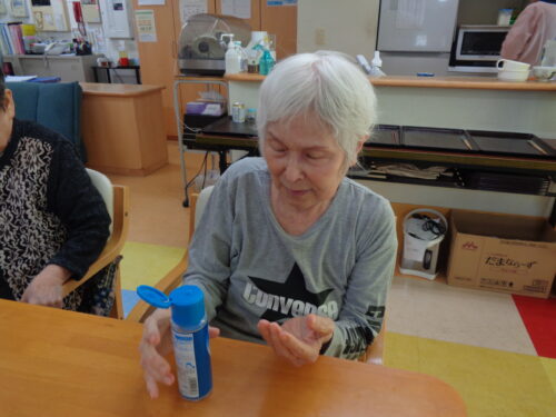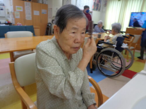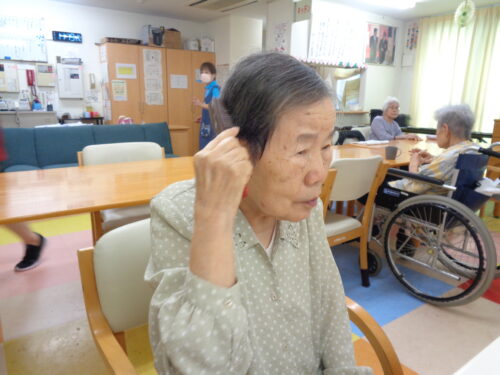 その後,席に行き,水分を取ってもらいます。「麦茶,美味しいねぇ」と味わってもらっています😋