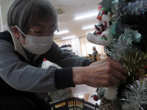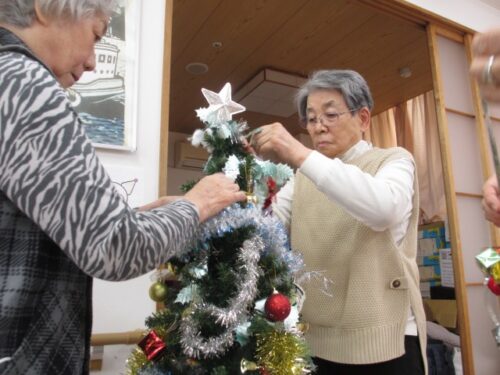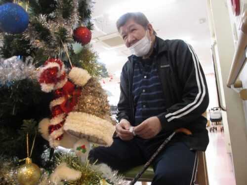 デイサービスでもクリスマスツリーの飾り付けを行いましたので、