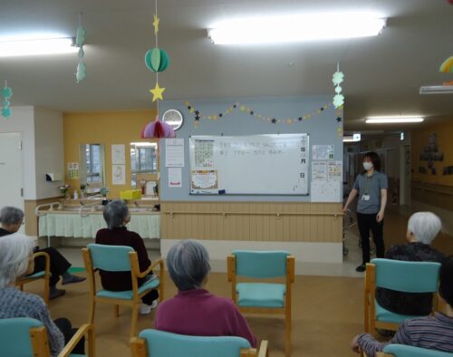 さわやか室蘭館 2F活力朝礼♪ 2025-12-10 2025-12-10 皆様こんにちは! 本日は、2Fの活力朝礼の様子をご紹介します(*'ω'*) テーマは【しりとり】です😸 序盤で、んがつく言葉が出てしまいましたが まだまだ終わりません! どんどん言葉が繋がっていくのが楽しいですね('ω')ノ