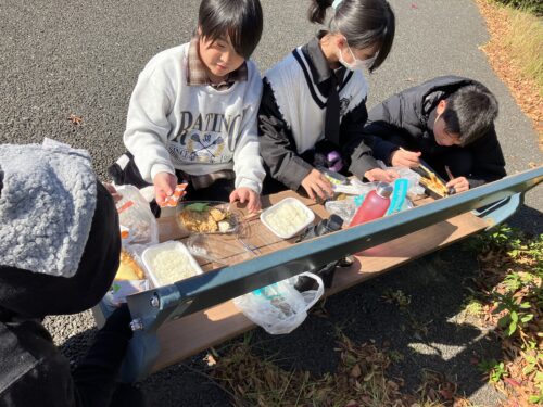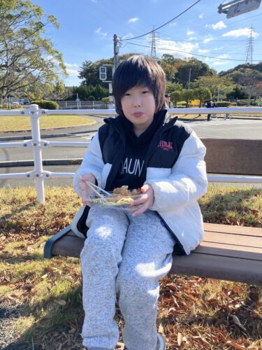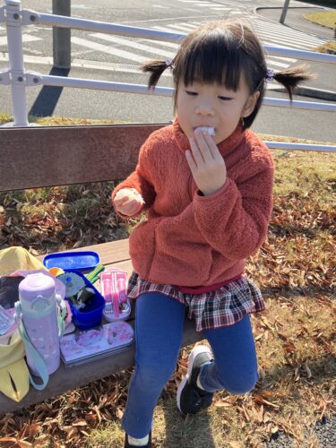 その後は、みんなで外でお弁当を食べました〜