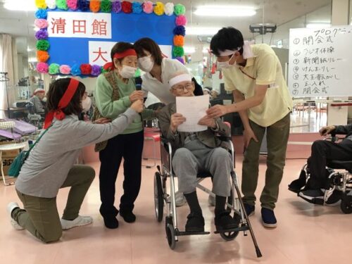 皆様には赤組と白組に分かれて頂き、ハチマキも巻いて頂きました😁