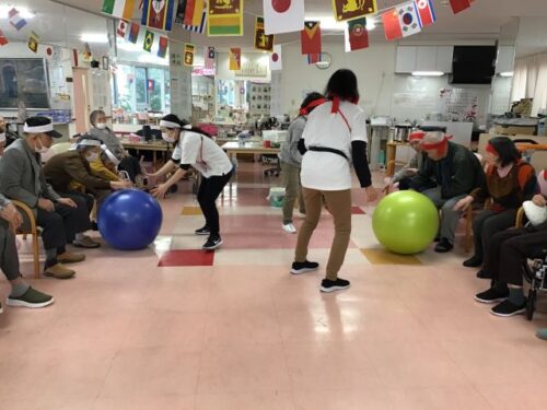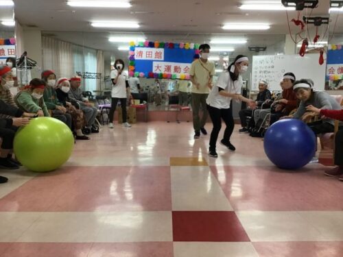 清田館大運動会、3種目目は「大玉転がし」です。
