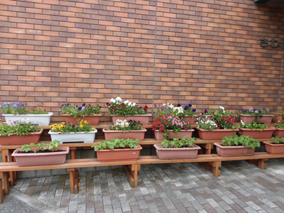 2か月に1回、生け花の先生が来館しています。希望者は四季折々の花を先生の手本をもとに、自分なりにアレンジメントしています。また、週に1度のお花の手入れにも来て頂いています。