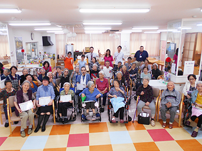 季節の中で、「ふれる・みる・きく・かおる・あじわう・かんじる」ことを大切にしています。心と体でたくさんのことを感じて頂くことで、意欲向上・機能の向上を目指しています。より多くの方と関わりを持ち、共に季節を感じて頂けるよう外出の機会を提供しています。