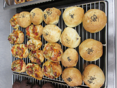 写真はパン作りの時の様子です。入居者様、職員で1から作った味は格別です!!ご家族様にも好評で参加されています♪
