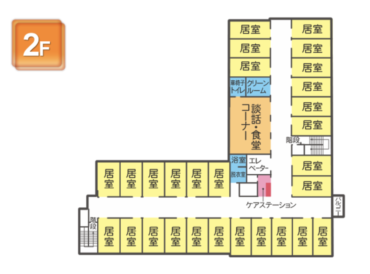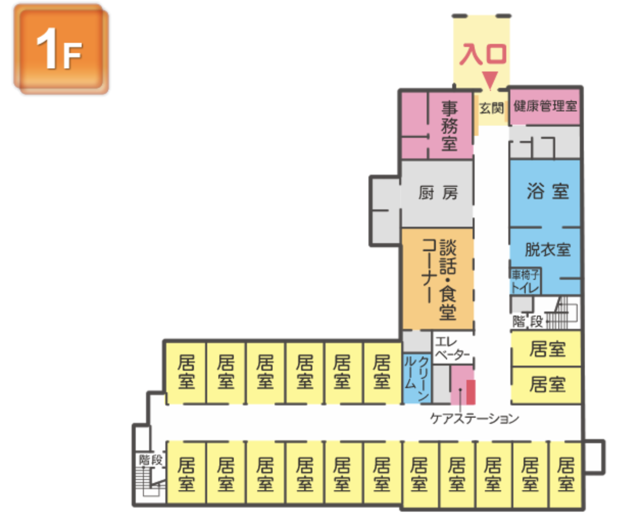 さわやかいわつき館では、1フロア20名~25名様程度のグループでの生活になります。同じフロアで生活していただくことで、お仲間ができやすく、また、お互いが刺激しあうことによって、生活にリハがもたらせると考えております。また、スタッフはご入居者様とゆっくりお話しすることも大切に考え、お一人おひとりの気持ちに寄り添った心やすらぐ暮らしをご提供させていただきます。