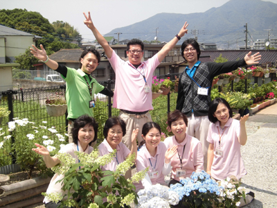 毎朝9時か530分ほどかけて、一日の始まりを元気に明るく迎えていただくため、活力朝礼という取り組み行っています。日替わりで行う漢字・慣用句・ことわざ・古今東西・しりとりなどの脳トレメニューや、歌・発