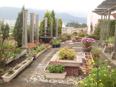 5階のルーフバルコニーと、そこから眺める安部山の景色です。心やすらぐ自然環境の中、春には青葉、夏には、秋には紅葉と移り行く四季の彩りを感じながらやかな時間の流れを感じることができます。5階フロアには喫茶コーナーを設け、自然を感じながらの喫茶・談話を楽しんでいただいています。施設正面の小川には毎年、が姿を現しています。また、職員とご入居者様が一緒に植物を育て、皆様の楽しみとなっています。