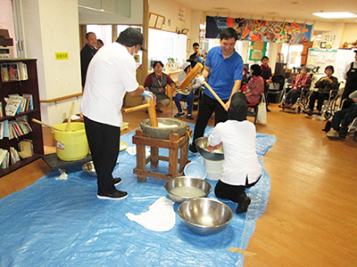 ご自宅での生活で朝食はパン食だったという入居者様やパン好きな入居者様がたくさんいらっしゃいます。入居者様に美味しいパンを召し上がっていただきたく、入居者様にお手伝いいただき、石釜を作成しました。