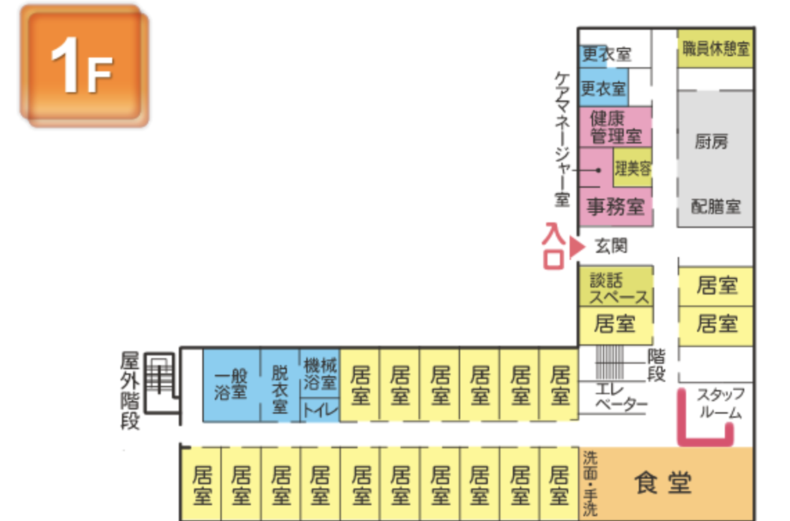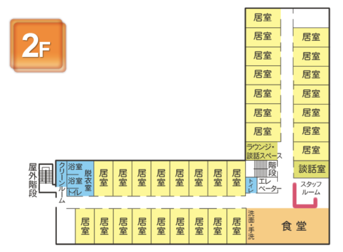 また、サービス付き高齢者向け住宅基準の建物のため、有料老人ホーム基準より広い居室が特徴的です。