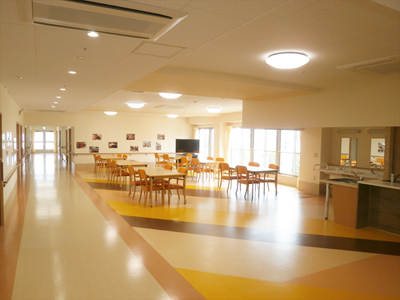施設内、敷地共に広々としており、玄関を入ってすぐに地域交流スペースもあります。普段から施設を開放し、地域の方々との絆を深められるような施設であり、存在を目指したいと考えております。また、各食堂兼談話コナーにおいても広い空間となっております。
