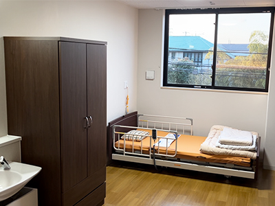 建物は鉄骨造の4階建て、館内は全室個室となっており、トイレ・洗面台・ベット・エアコンに加え、アンシエル(見守りセンサー)も備え付けで充実しています。居住スペースが広く落ち着いた雰囲気に設計し、より楽しく元気に生活してもらえる環境が整っています。施設は閑静な住宅街の中にあり自然豊かな場所で、近くには豊田スタジアムなどの建造物もあります。