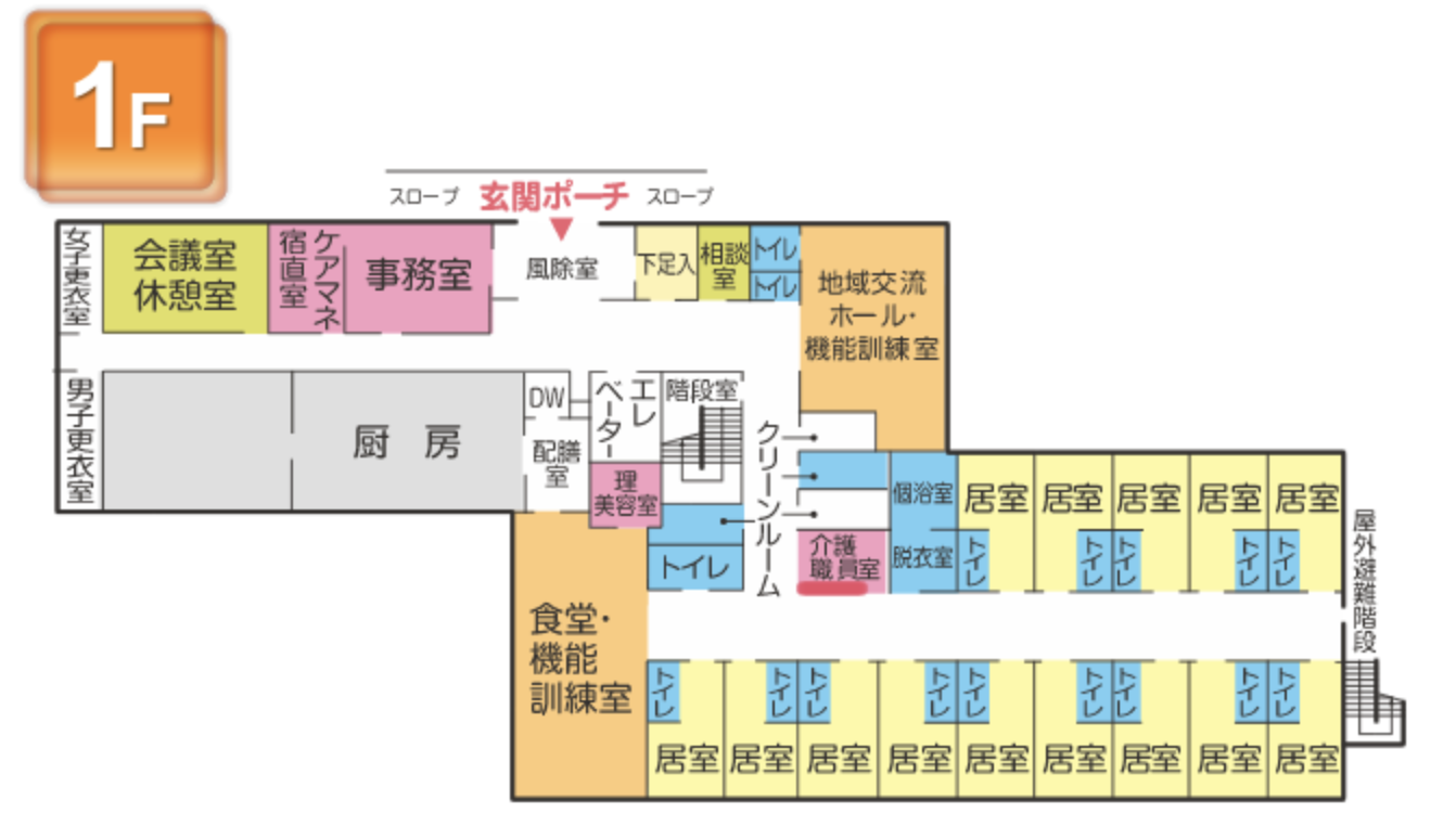 当施設は住宅街に佇む特定施設入居者生活介護60床の施設です。建物は3階建てとなっており全室個室で、ゆとりのある共有スペースの中ではレクリエーションやリハビリにも力を入れています。楽しく生活を送ってもらえるよう職員が色々な事にチャレンジし施設内を盛り上げています。