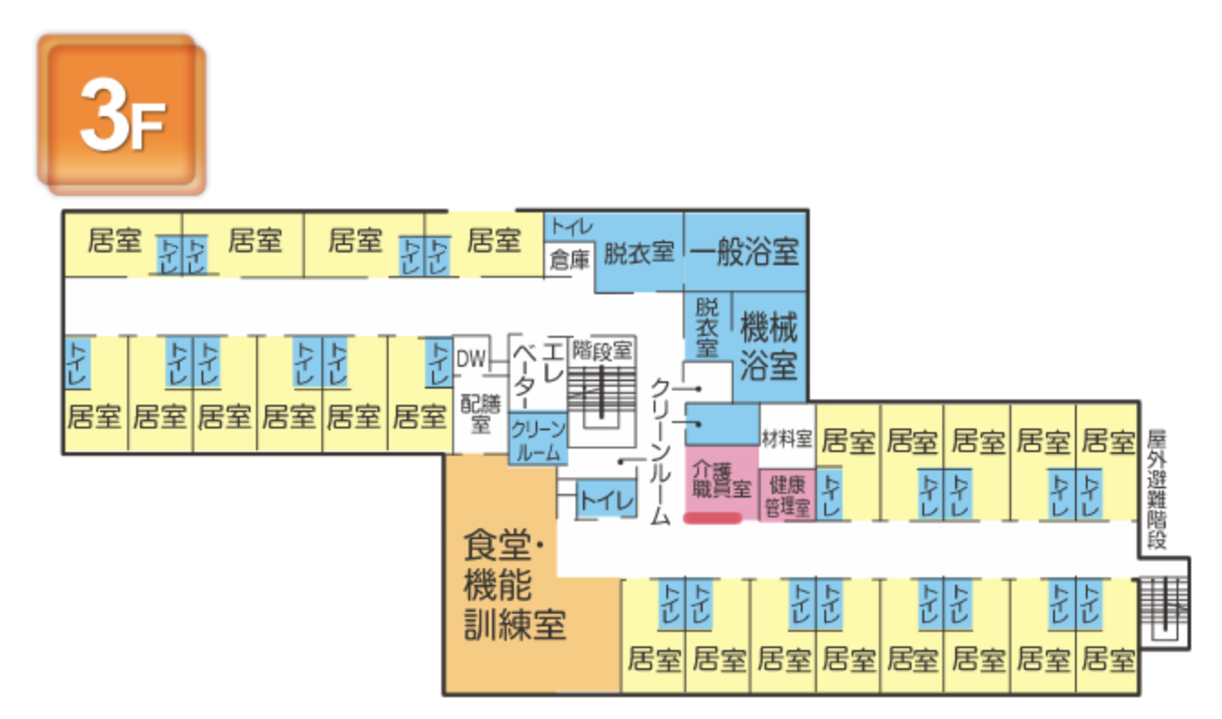 はままつ館は、3階建・全室個室・居住空間は広々と明るい設計になっています。