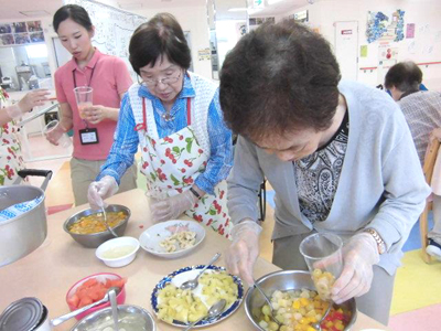 桜弐番館では行事が豊富に行われております。お祭りや、運動会の他にカラオケ喫茶や書道教室、マグロの解体ショー、スポーツクラブ、将棋、碁、外出。お好みのレクリエーションにご参加頂けます。生きがい作りをお手伝いさせて頂きます。