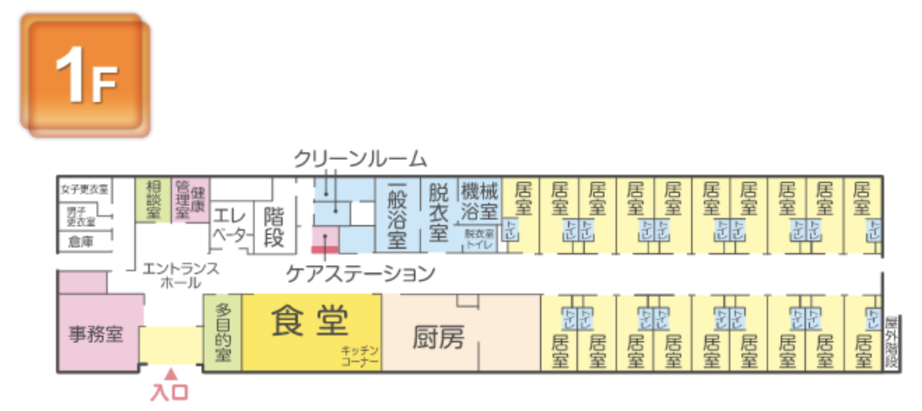 介護士はもちろん、看護師、栄養士、機能訓練指導員、各分野・多方面から入居者様の健康を管理致します。協力病院と連携を行いながら目の行き届いた体制を確保。ご入居者様の体調に合わせた生活、お食事も季節の物を使用し、体調に合わせた形態でご提供させて頂きます。